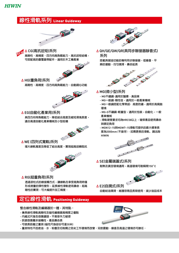 沈陽柯瑞艾特精密機械有限公司經營上銀全系列直線導軌、微型導軌、電動滑臺等各類產品,倉庫備有大量庫存。上銀直線導軌精密高、噪音低、壽命長,通用性強,歡迎電話咨詢024-22515196索取詳細目錄。